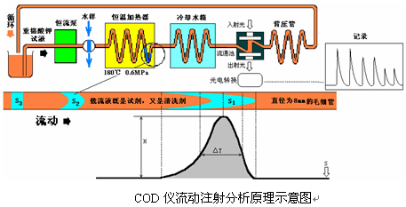 高溫高壓法縮短氧化時(shí)間(流動(dòng)注射式高溫高壓型) 流動(dòng)注射分析(簡稱FIA)型COD在線分析儀就是通過高溫(180℃)高壓(0.6MPa)來加快消解反應(yīng)速率,所選擇的溫度、壓力、時(shí)間,使其氧化率和標(biāo)準(zhǔn)手工法氧化率基本一致。