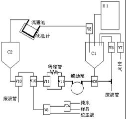 測量原理和流程圖 若有必要,樣品經(jīng)過過濾后,把樣品泵入LFA反應(yīng)器里。在LFA反應(yīng)器里,首先比色計(jì)讀取水樣的樣品空白值,再注入酸性藥劑R1和樣品中的六價(jià)鉻反應(yīng)呈現(xiàn)紫色,微處理器控制儀器進(jìn)行充分藥品混合和反應(yīng)后,分析儀在525nm處測量這種紫色色的物質(zhì)。并依據(jù)存儲(chǔ)在分析儀里的校正因數(shù)計(jì)算出樣品的濃度。